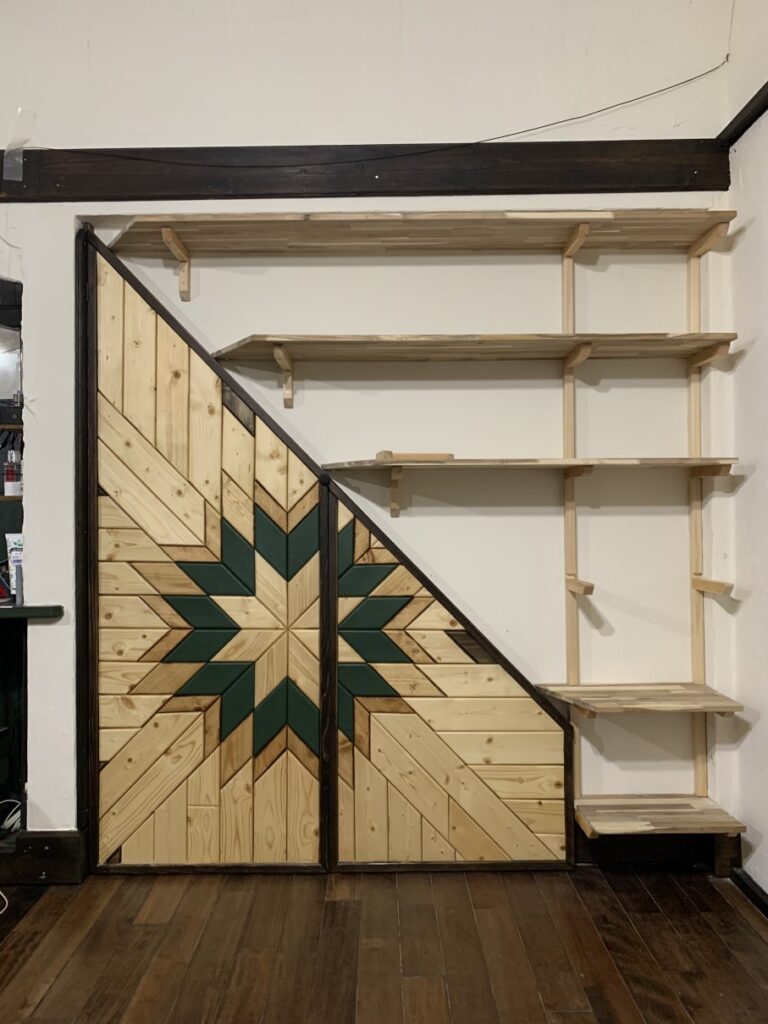 階段下の空間を収納にアコーディオンドア。試しに出来るのか挑戦デザインは割と気に入っていない。